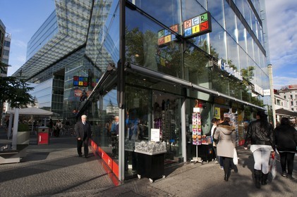 Shops behind glass facades, Neues Kranzler Eck, Berlin-Charlottenburg, Berlin, Germany, Europe. Neues Kranzler Eck.Neues Kranzler Eck.Linking tradition and modernity..