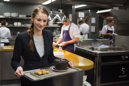 Kitchen of Das Stuen. Michelin-starred Catalan chef Paco Purez in Das Stue Restaurant. Occupying a 1930s building that originally was Berlin's Royal Danish Embassy, Das Stue's unique heritage is reflected in its name, the Danish term for "living room.