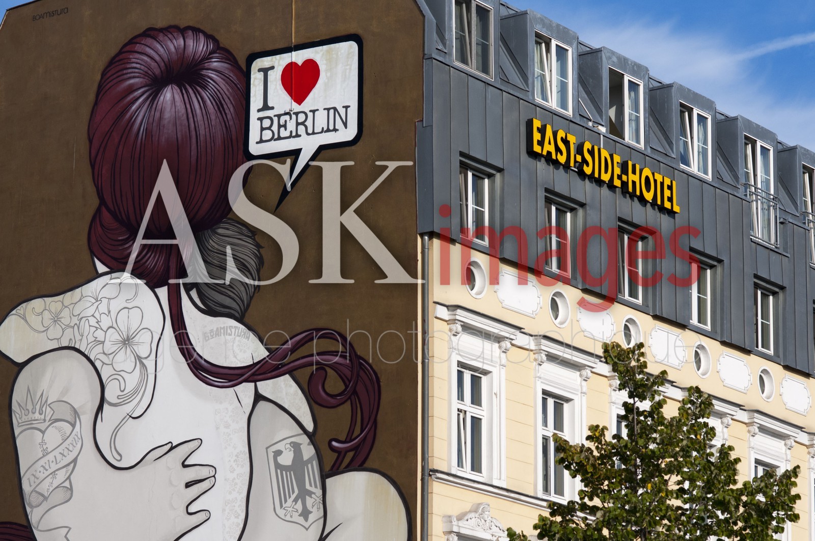| Description | I love Berlin. East Side Hotel in front of East Side Gallery. The East Side Gallery is a 1.3 km-long painted stretch of the former Berlin Wall along the Muhlenstrasse in former East Berlin. It is the largest open-air gallery in the world with over one hundred original mural paintings. |