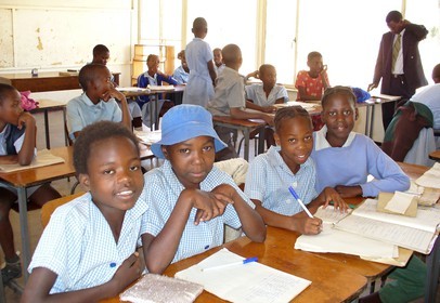Schoolkids in a classroom in Zimbabwe *** Collegiens dans une classe au Zimbabwe