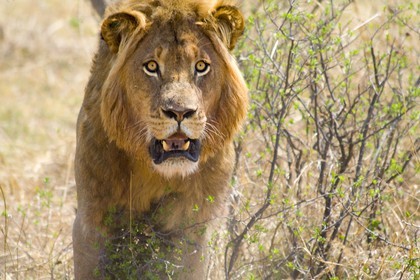 Zimbabwe : displeased lion of human presence and going to attack *** Zimbabwe : lion mecontent de la presence de touriste et commencant a attaquer