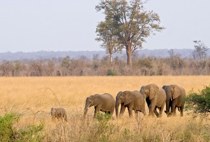 Zimbabwe : Group of elephant being regrouped to protect children *** Zimbabwe : elephants en groupe pour se proteger des menaces exterieures