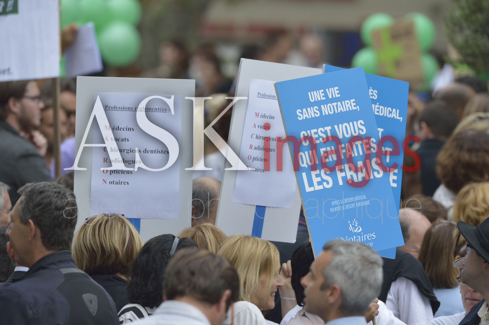| Description | Manifestation devant la préfecture de Marseille le 30 septembre 2014 des professions libérales, Pharmaciens, kinésithérapeutes, notaires ... |