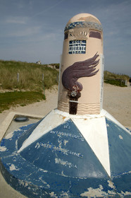 Calvados Utah beach, la borne 00 de la Voie de la liberte est la premiere de l'itineraire de l'armee americaine jusqu'e Bastogne, en Belgique