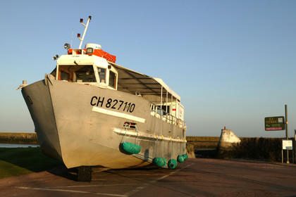 Manche Le port de Saint-Vaast-la-Hougue a maree basse. Vehicule amphibie Tatihou.
