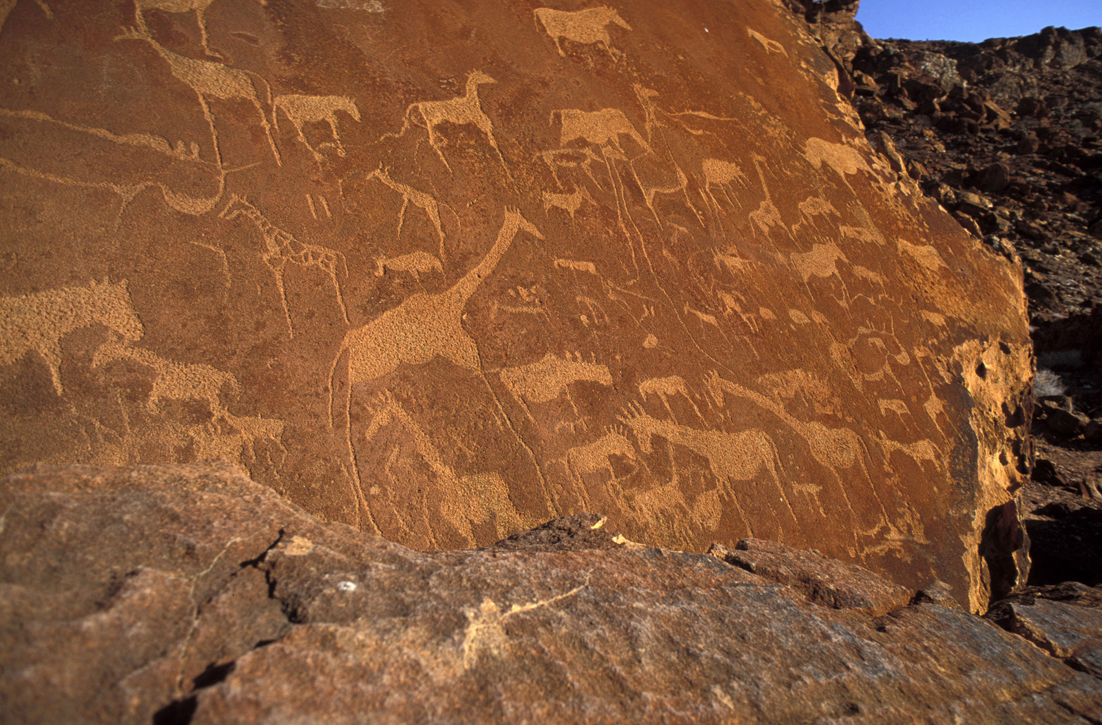 | Description | Twyfelfontein, gravures rupestres Namibie. *** San animal petroglyphs in Twyfelfontein Namibia. |