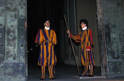 VATICAN CITY STATE, A PILGRIM SINGS AN AVE-MARIA TURNED TOWARDS SAN PETER SQUARE. THE JOHN PAUL II DEATH