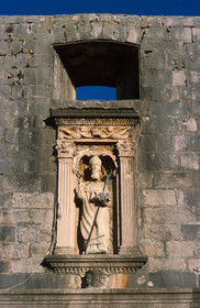 Statue de Saint blaise surplombant la porte Pile. *** Statue of Saint Blaise above the Pile entrance ....... Croatie *** Croatia