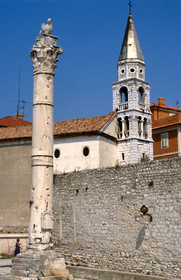 Colonne romaine et eglise orthodoxe de Saint Ilija a Zadar. *** Roman column and Saint Ilija orthodox church, Zadar....... Croatie *** Croatia