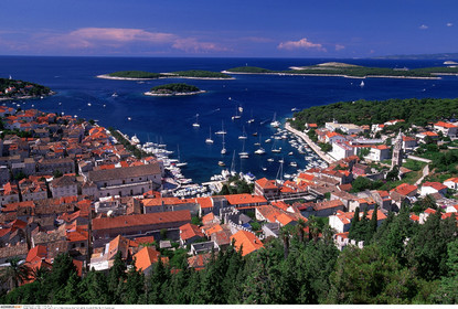 Croatia / Dalmatia / Hvar / Hvar Town / View from Citadel across Hvar Town and Hell Islands..© Oliver Bolch / Anzenberger Croatia
