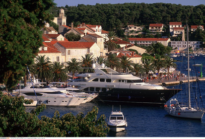 Croatia / Dalmatia / Hvar / Hvar Town / View across Luka Hvar with Yachts..© Oliver Bolch / Anzenberger Croatia