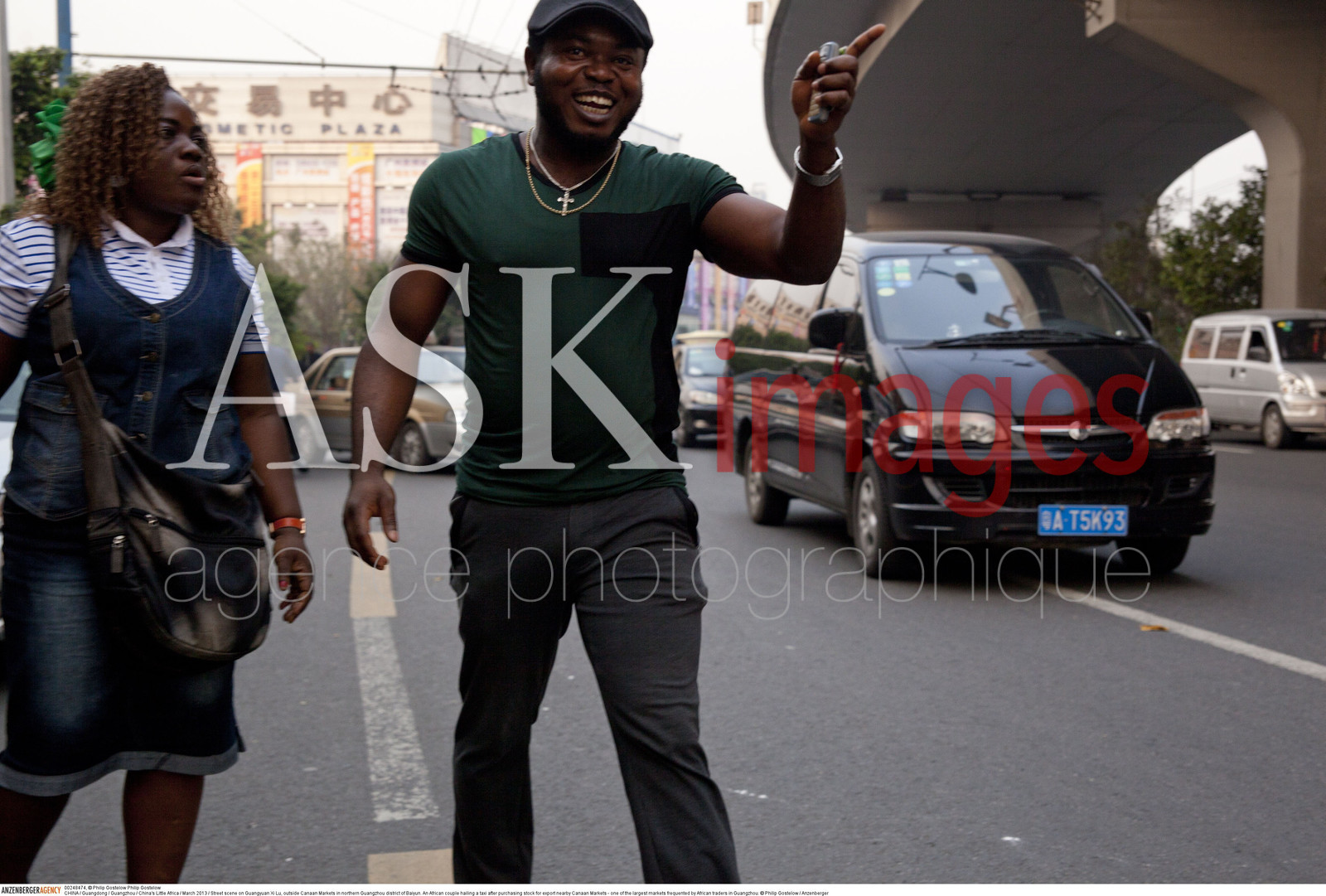 | Description | CHINA / Guangdong / Guangzhou / China's Little Africa / .Street scene on Guangyuan Xi Lu, outside Canaan Markets in northern Guangzhou district of Baiyun. An African couple hailing a taxi after purchasing stock for export nearby Canaan Markets - one of the largest markets frequented by African traders in Guangzhou...© Philip Gostelow / Anzenberger |