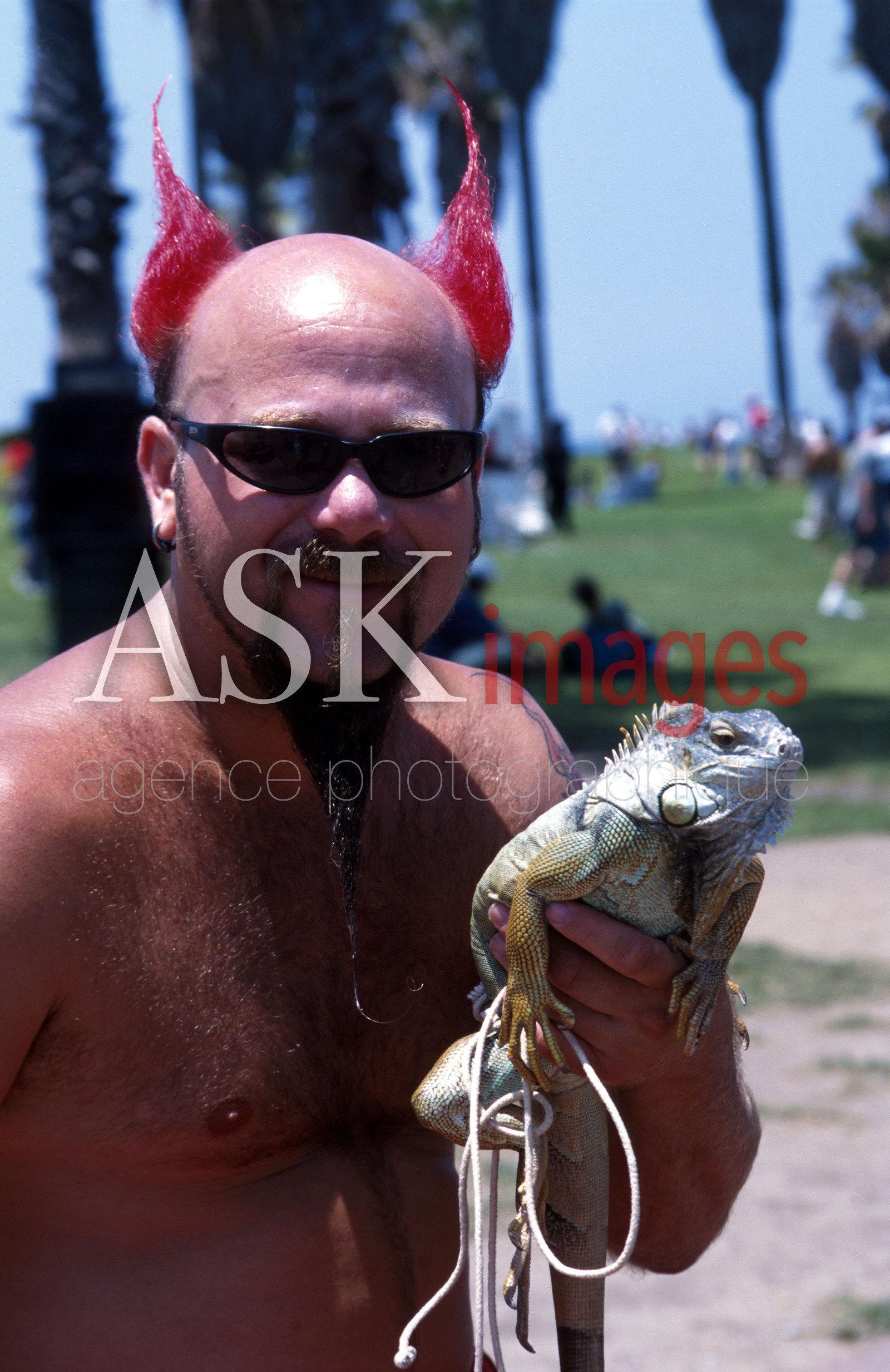 DescriptionCalifornia, Los Angeles, Venice Beach, a man with an iguana.