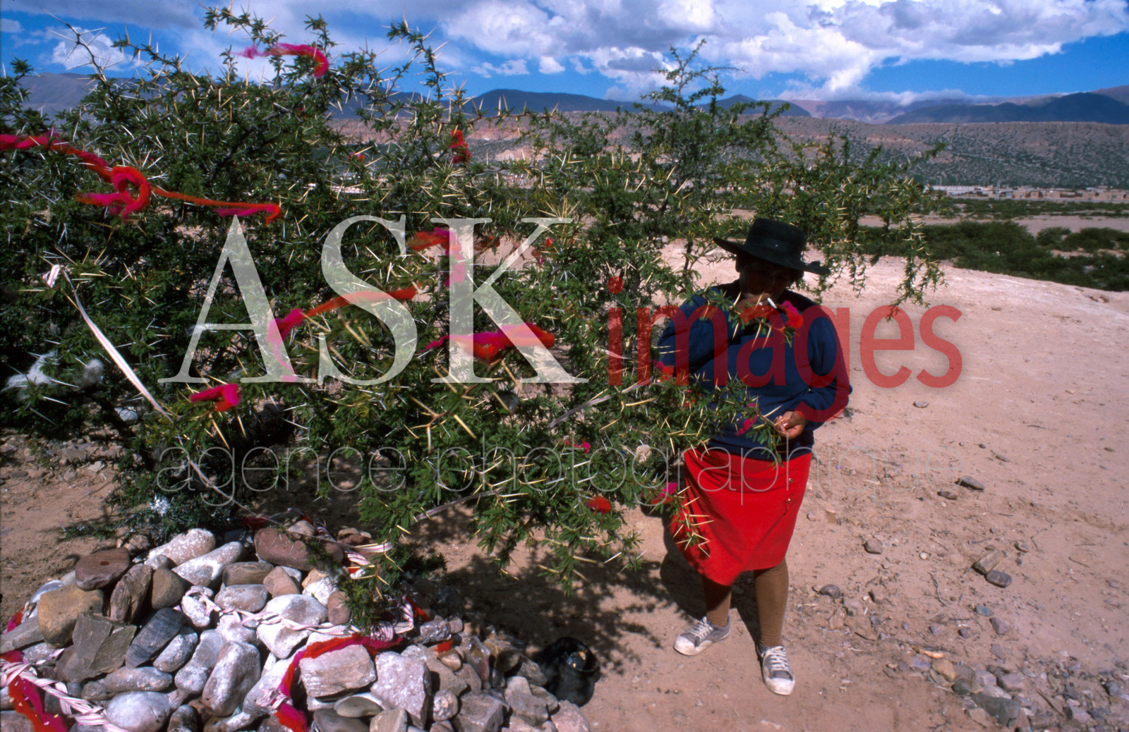 | Description | Woman in front of Apacheta, Marcada ritual, Humahuaca, Argentina. |