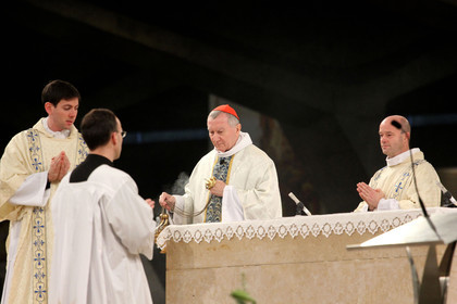 MONSEIGNEUR PIETRO PAROLIN, CARDINAL DE L EGLISE CATHOLIQUE ET SECRETAIRE D ETAT DU VATICAN, REALISE LA MESSE INTERNATIONALE EN LA BASILIQUE SAINT PIE X, LOURDES, HAUTES PYRENEES, OCCITANIE, FRANCE, EUROPE