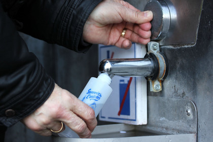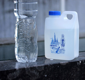 DE NOMBREUSES FONTAINES A EAU SONT DISPONIBLES POUR LES PELERINS, REMPLIR LES BOUTEILLES, BIDONS ET AUTRES, L EAU BENITE COULE EN ABONDANCE LE LONG DE NOTRE DAME DE LOURDES, LOURDES, HAUTES PYRENEES, OCCITANIE, FRANCE, EUROPE
