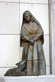 STATUE DE BERNADETTE SOUBIROUS, LE LONG DE L EGLISE MODERNE, LOURDES, HAUTES PYRENEES, OCCITANIE, FRANCE, EUROPE
