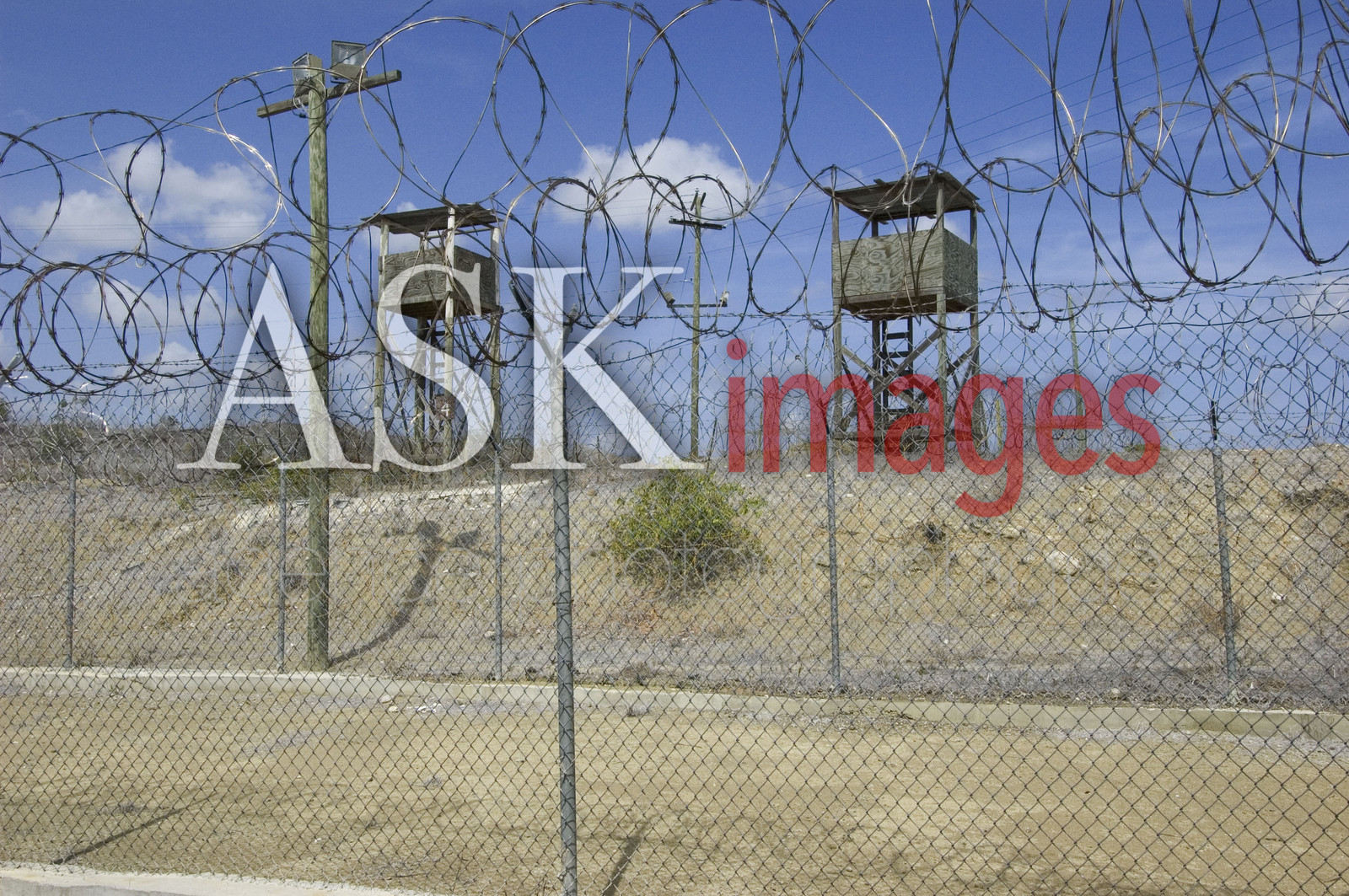 DescriptionCUBA, Guantanamo, Camp X Ray (Now abandoned) was used for original detainees before more permanent facilities were built, Two Guard Towers Guantanamo.
