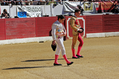 europe, france, aquitaine, landes, air sur l adour, le paseo est le defile des matadors au debut des tauromachies ou des novilladas, un moment hautement symbolique pour les matadors