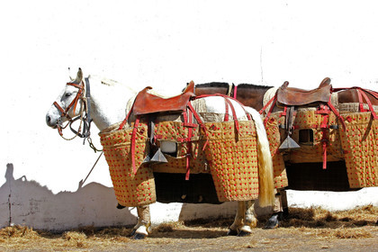 europe, france, aquitaine, landes, air sur l adour, les chevaux des picadors se reposent avant d entree dans les arenes
