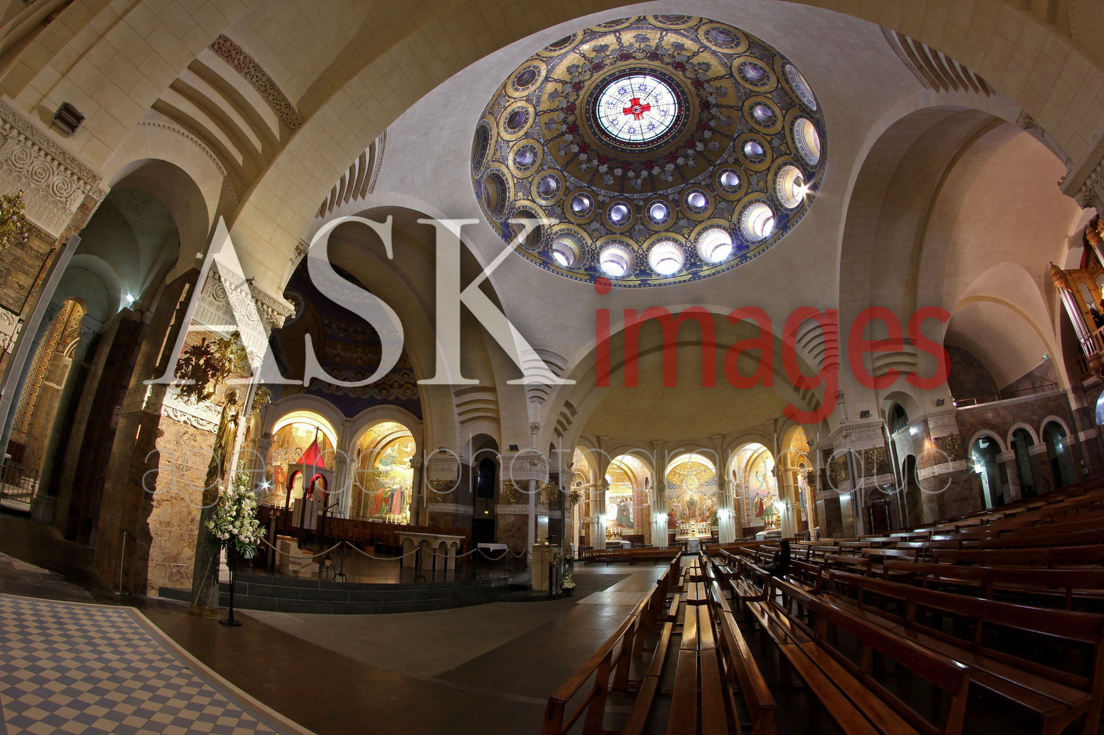 | Description | Europe, occitanie, hautes pyrenees, lourdes, nef et choeur de la basilique notre dame du rosaire au centre la coupole, son plan est en forme de croix grecque,quinze chapelles rayonnantes ornees de mozaiques representent les mysteres du rosaire. |