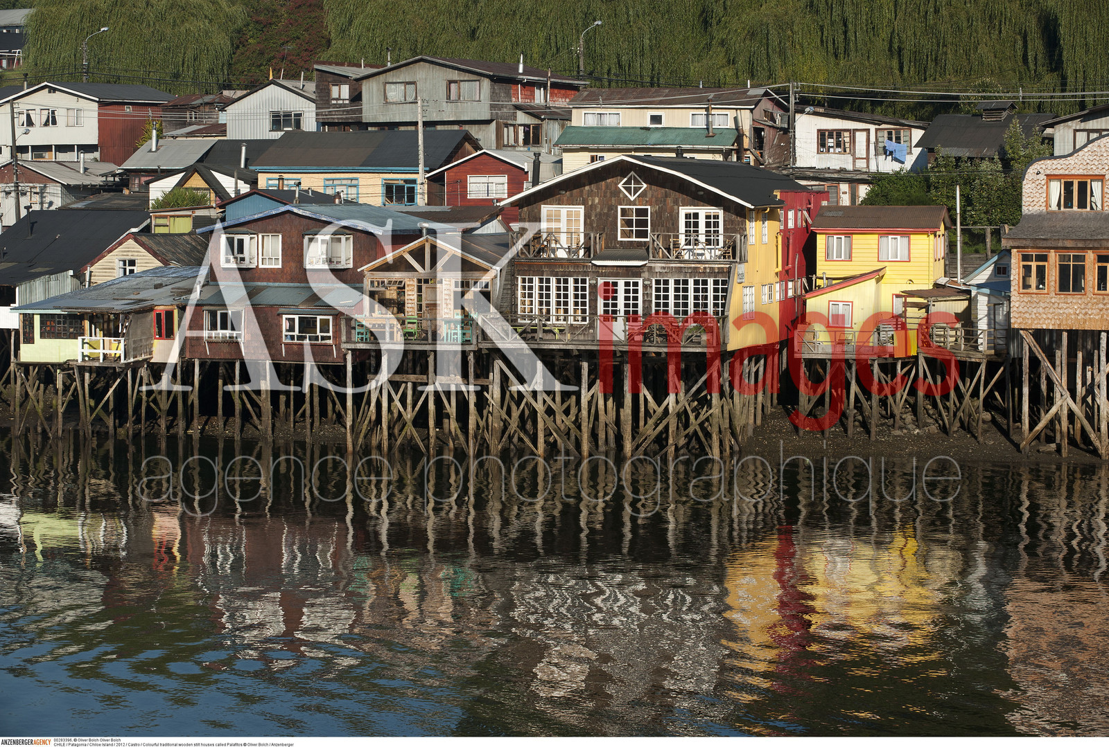 | Description | CHILE / Patagonia / Chiloe Island / Castro / Colourful traditional wooden stilt houses called Palafitos..© Oliver Bolch / Anzenberger.. |