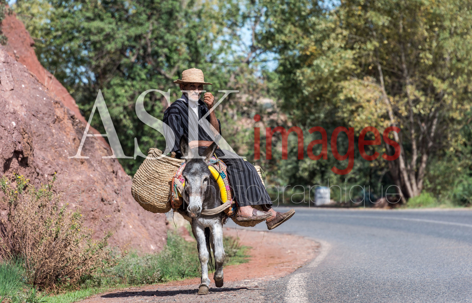 DescriptionAn old farmer on the back of his donkey on the road, Morroco