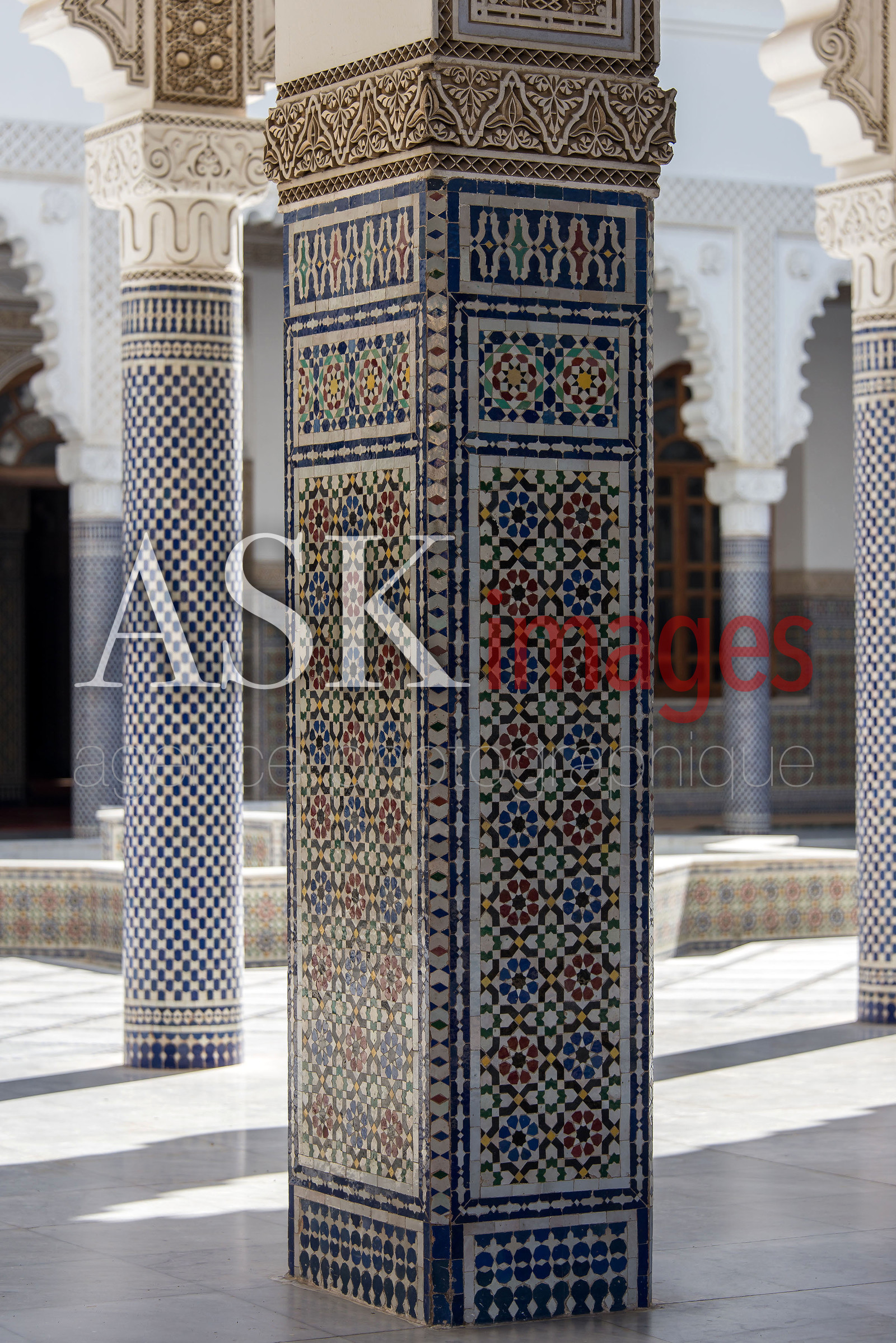 Column in Zellige of the mosque of Fez, typical Moroccan craft