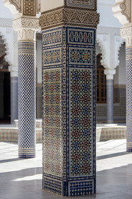 Column in Zellige of the mosque of Fez, typical Moroccan craft