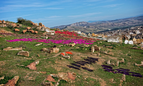 Fountain in Zellige of the mosque of Fez, typical Moroccan craft