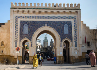 The Famous Blue Gate in the Medina of Fez, Morocco.
