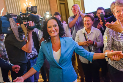 AUSTRIA / Vienna / Palais Auersberg / 22.05.2016 .Eva Glawischnig bei der Wahlfeier Alexander van der Bellen im Palais Auersberg ..© Markus Sepperer / Anzenberger Bundespresidentenwahl 2016 Van der Bellen Kampagne