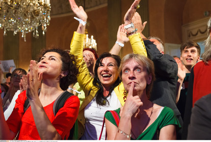 AUSTRIA / Vienna / Palais Auersberg / 22.05.2016 .Wahlfeier Alexander van der Bellen im Palais Auersberg ..© Markus Sepperer / Anzenberger Bundespresidentenwahl 2016 Van der Bellen Kampagne