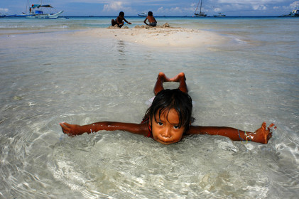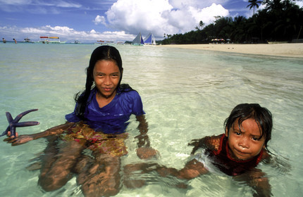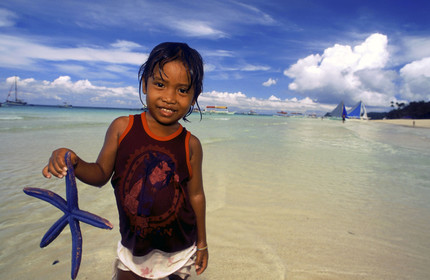 Children playing on the beach, Starfish, White beach, Boracay, Philippines, Boracay is a small island in the Philippines located approximately 315km south of Manila