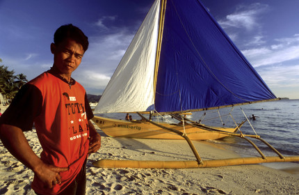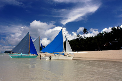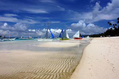 Tourists, Boats to practice sailing, White beach, Boracay, Philippines, Boracay is a small island in the Philippines located approximately 315km south of Manila