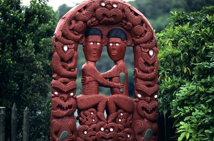 • Maori sculpture, Waitangi Day, North Island, New Zealand.
