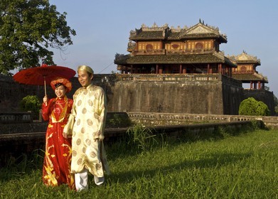 • Hue, the citadel, couple in traditional costume