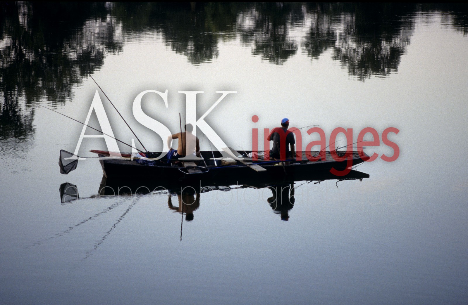 | Description | France, Maine-et-Loire, Saumur, fishing men on Loire river |