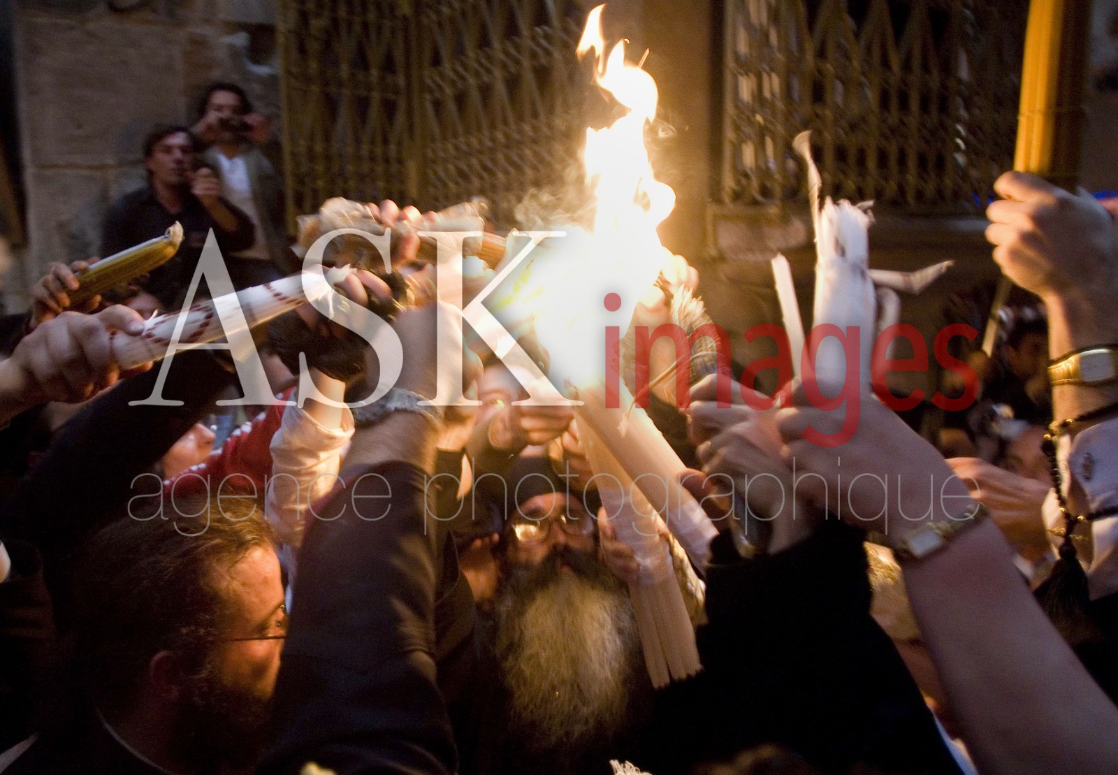 | Description | Israel, ceremonie de la Lumiere Sainte provenant du Tombeau de notre Seigneur Dieu et Sauveur Jesus Christ. *** Saturday Holy fire ceremony .The church of the Holy Sepulchre in Jerusalem. |