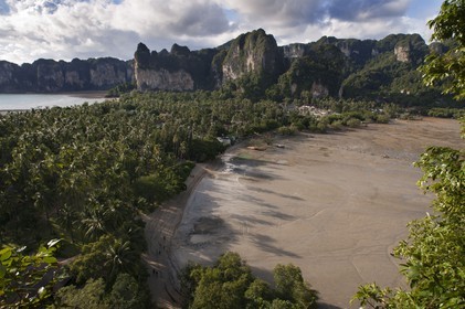 • Panoramic view of Railay near Krabi in Thailand from the viewing point. Railay, also known as Rai Leh, is a small peninsula between the city of Krabi and Ao Nang in Thailand. It is accessible only by boat due to high limestone cliffs cutting off mainland access.