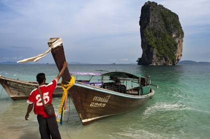 • Long-tail boat moored on the beach at Koh Poda Islands in the Andaman Sea, Thailand. Ko Poda is an island off the west coast of Thailand, in Krabi Province, about 8 kilometres (5 mi) from Ao Nang.