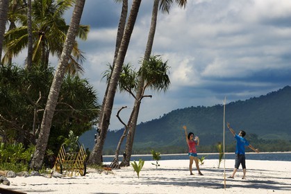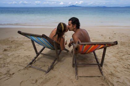 • A couple in a beach of Six Senses Resort, Koh Yao Noi, Phang Nga Bay, Thailand, Asia.
