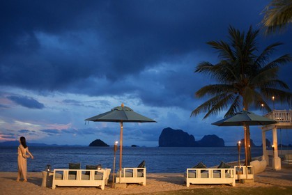 • Restaurant on the beach in Anantara Si Kao Resort & Spa, south of Krabi, Thailand.