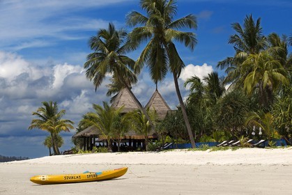 • Kayak on a Hotel on a palm-lined beach, Koh Mook Sivalai Beach Resort Hotel, island of Ko Muk or , Thailand, Southeast Asia, Asia.