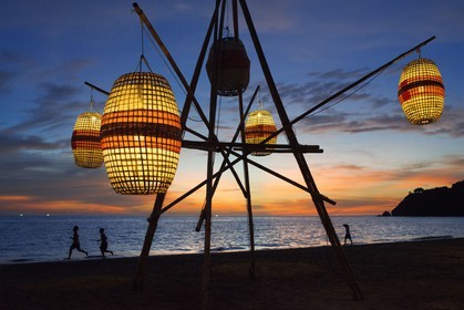 • Paper lights and sunset in the beach. Kantiang Bay. Koh Lanta. Thailand. Asia.
