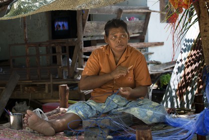 • Fisherman mending their nets. Fishing gypsy village. Koh Mook (Muk) is a small rocky island off the coast of Trang province. On the east side, the island has a long sandy peninsula. Thailand