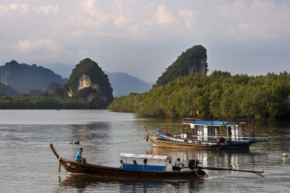 • Khao Khanap Nam. Krabi River and Kanab Nam Twin Peaks in the distance, Krabi Town, Krabi Province, Thailand, Southeast Asia, Asia. A very popular place to visit in Krabi is Khao Khanap Nam, a couple of raged hills, the natural gateway to Krabi, stretching 100m out of the water.