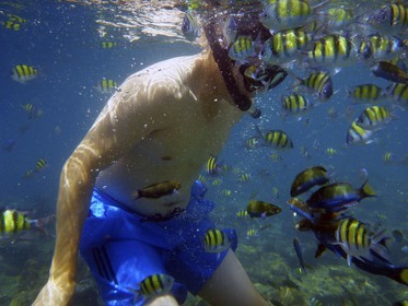 • Pimalai Resort Activities: man doing Snorkelling in Koh Rok in The Lanta Marine National Park, Koh Lanta, Krabi. Thailand.