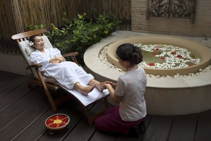 • Foot massage in a spa of hotel Pimalai Resort, Kantiang Beach, Ko Lanta or Koh Lanta island, Krabi, Thailand, Asia.