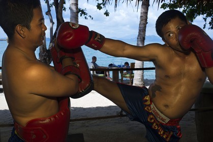 • Koh Yao Noi, Phang Nga Bay, Thailand, Asia. Thai Boxing: Muay Thai class, lessons. Muay Thai boxing ring, located at our water sports near the arrival pier..The training is an highly aerobic sport, which will increase agility, speed, cardio endurance and strength.